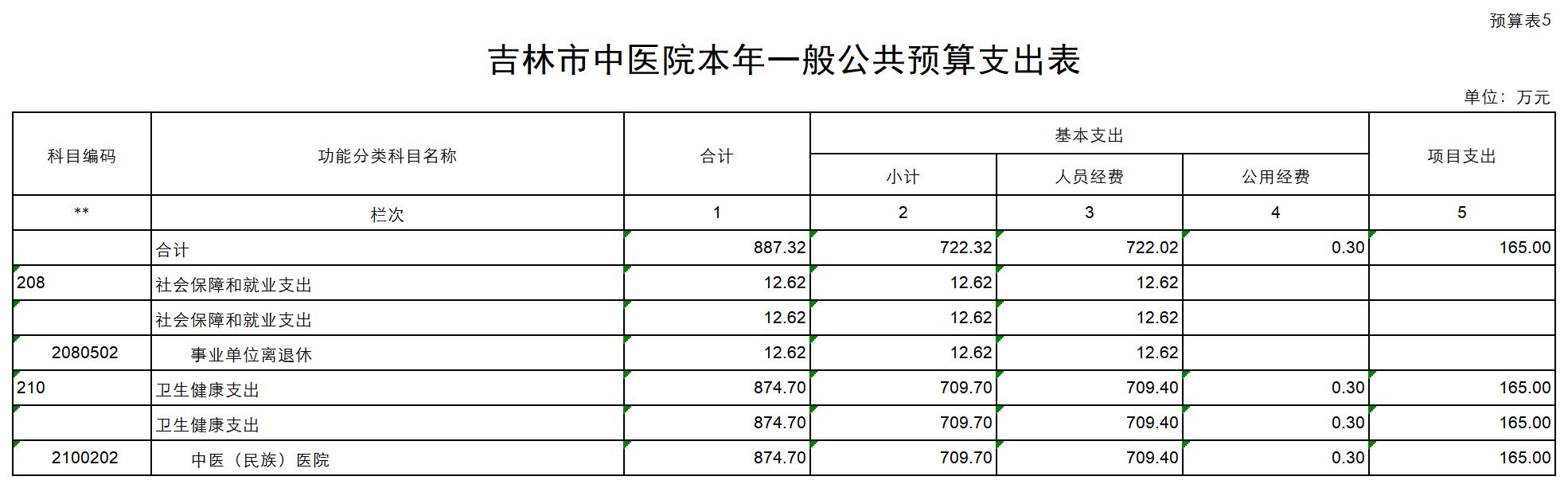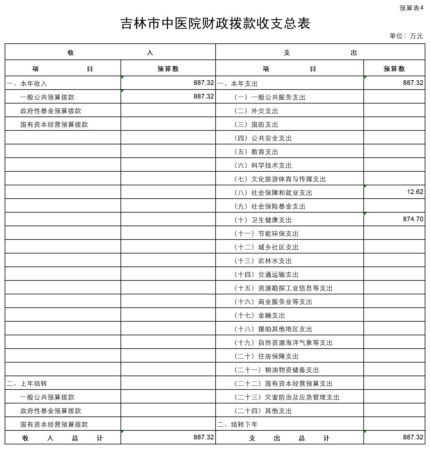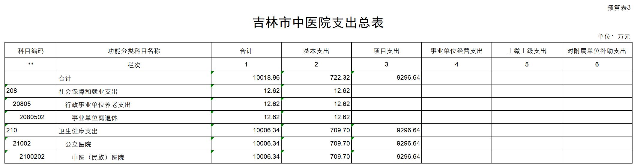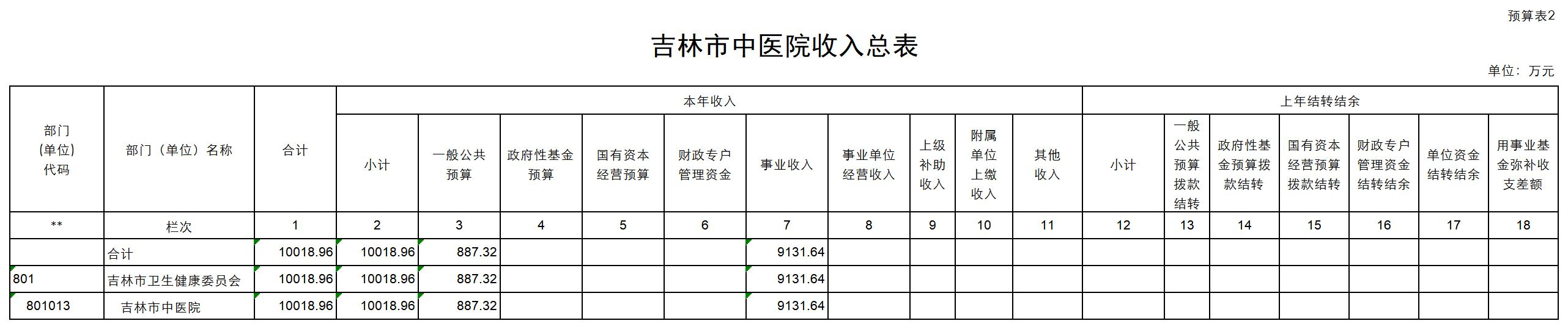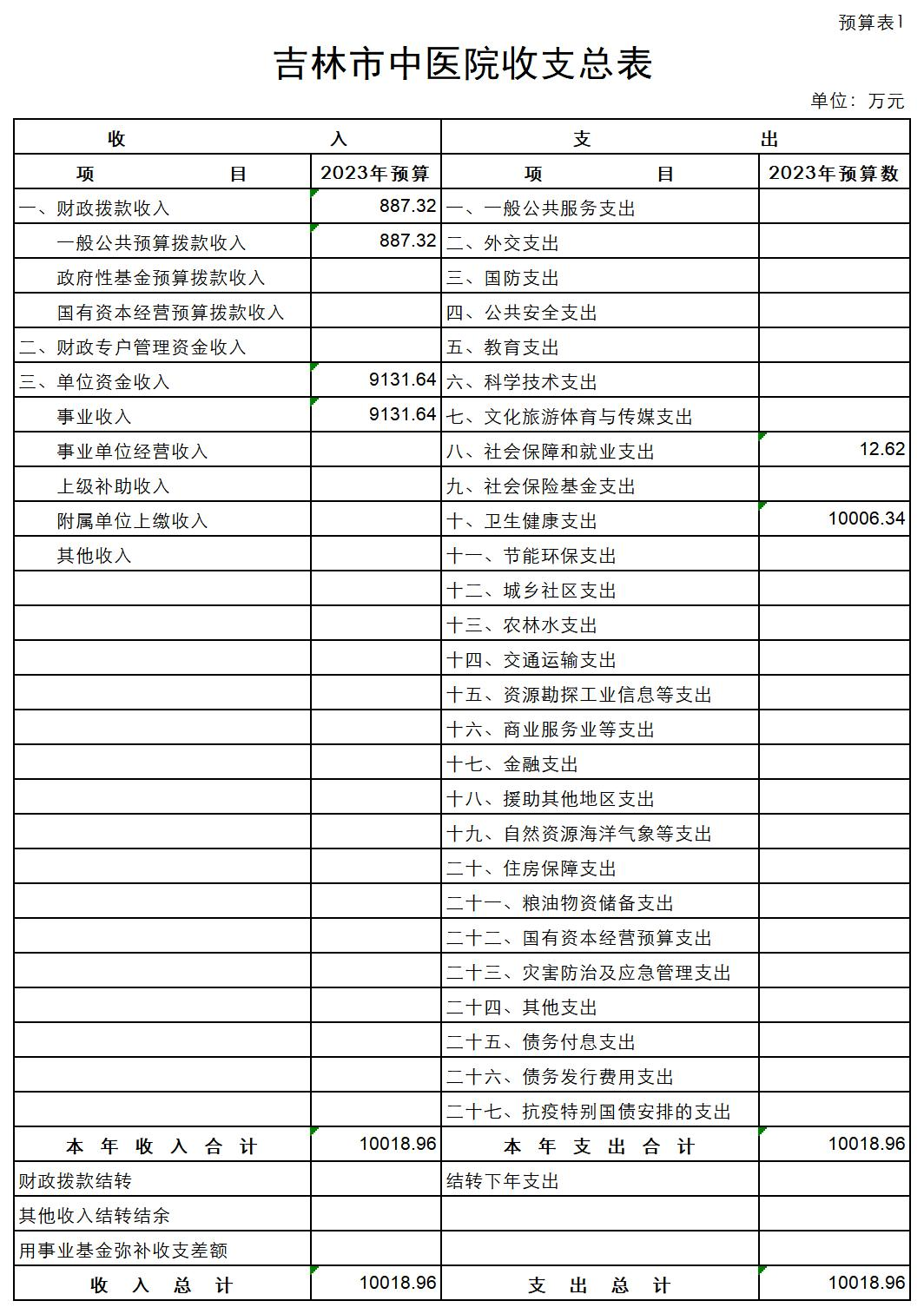 吉林市中医院2023年单位预算