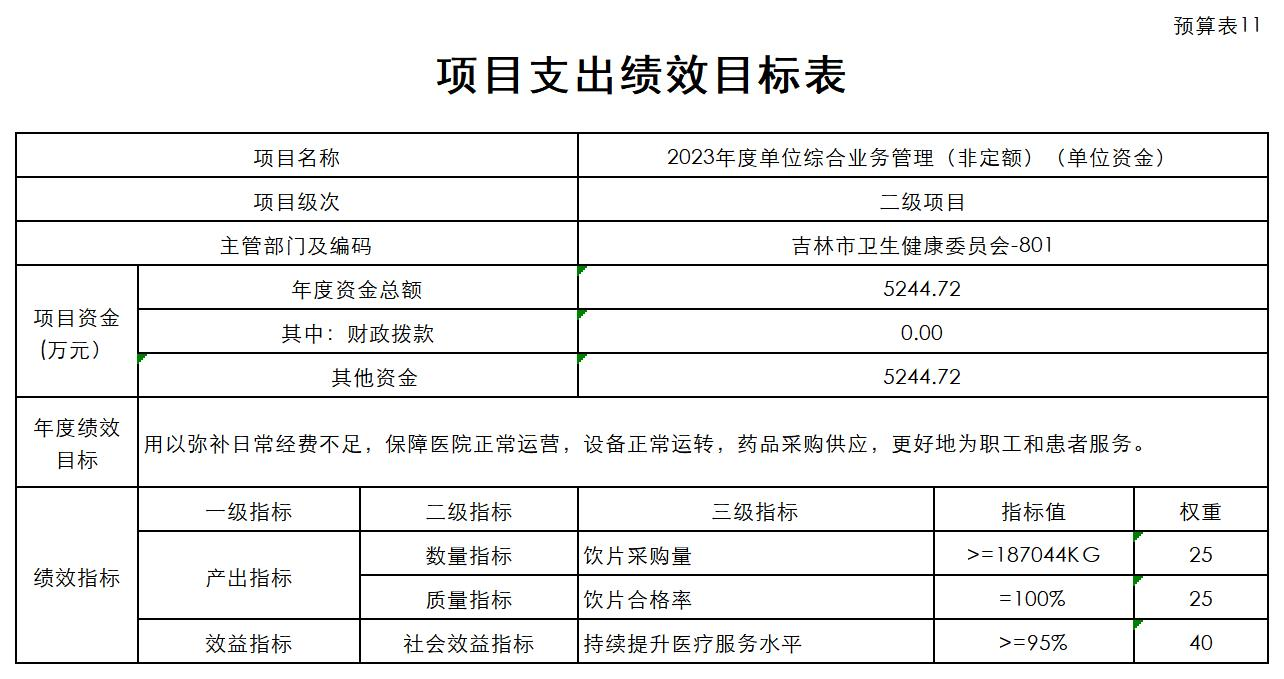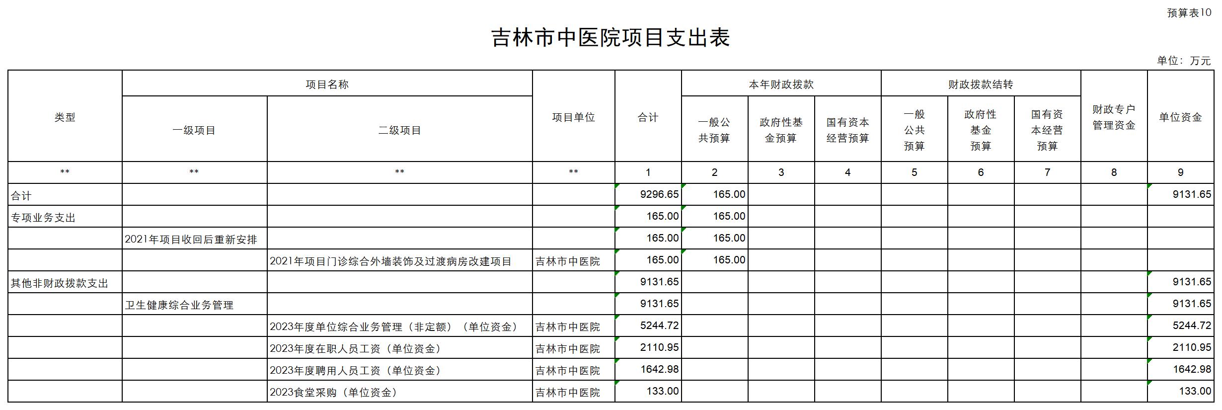 吉林市中医院2023年单位预算